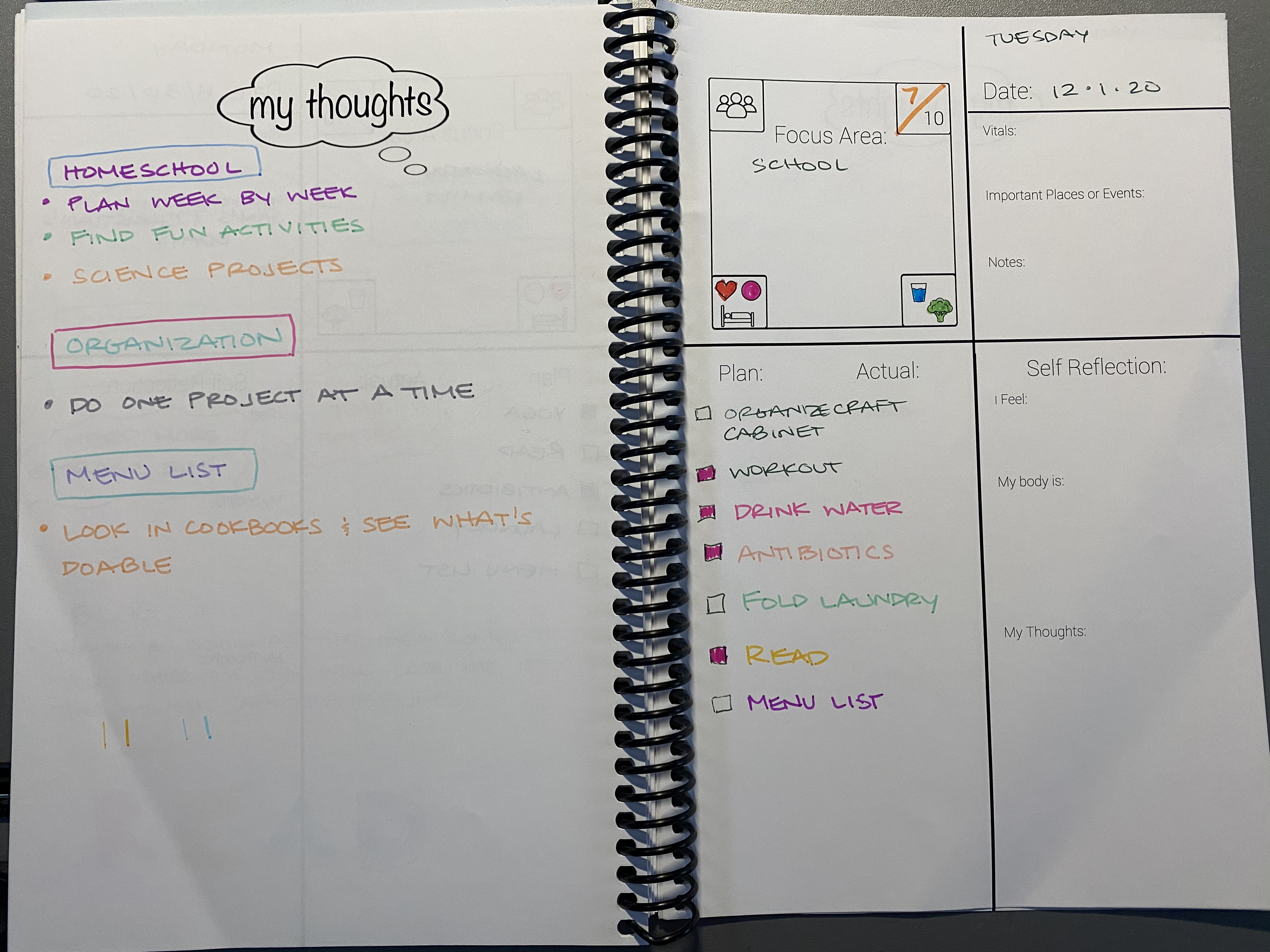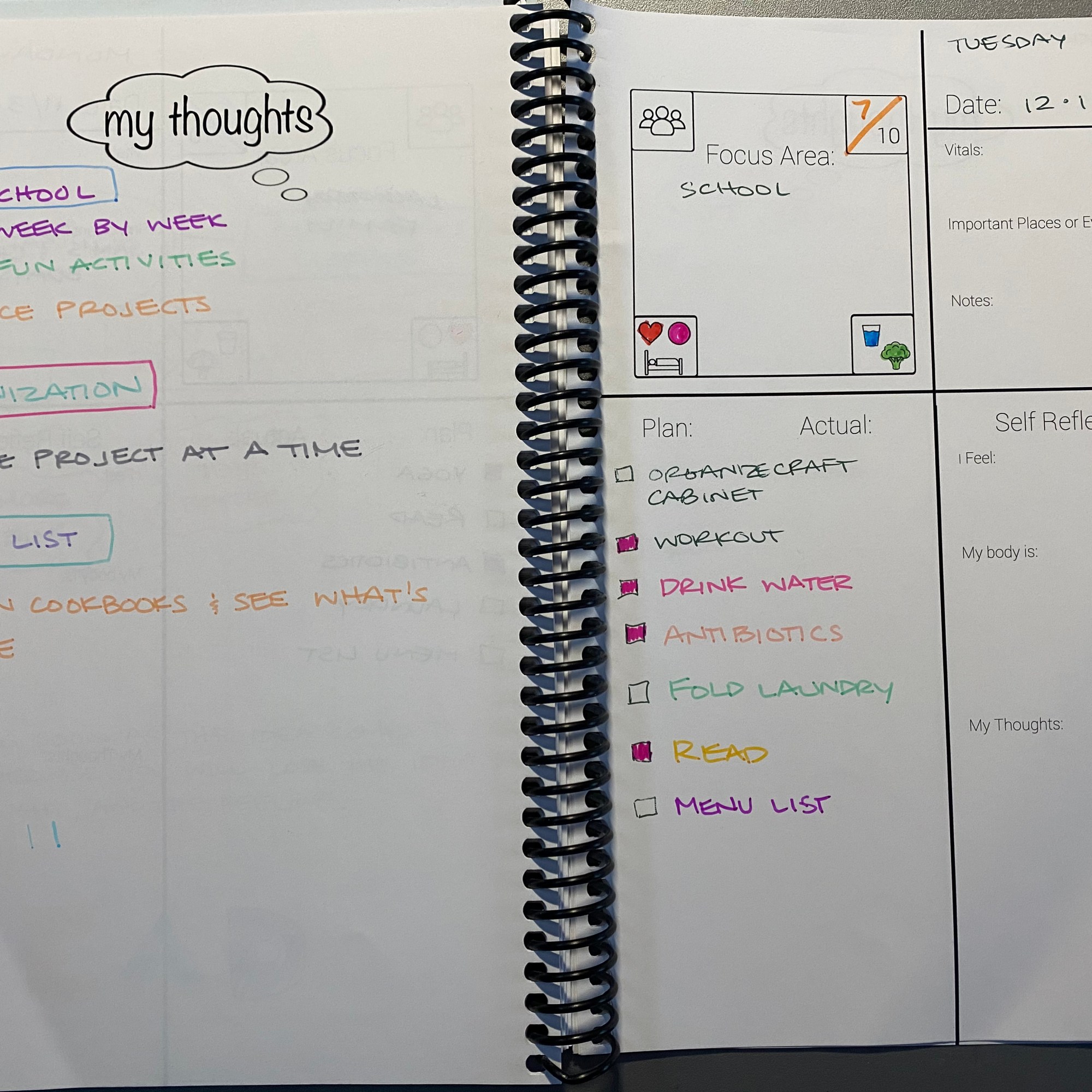 - If you feel overwhelmed, anxious, lost, or confused, this journal will help you identify what area(s) of your life are working well, and see where there may be gaps or potential areas for improvement or focus. (Example: When you recognize some corners are colored in more often than others or your ratings trend up or down.)
